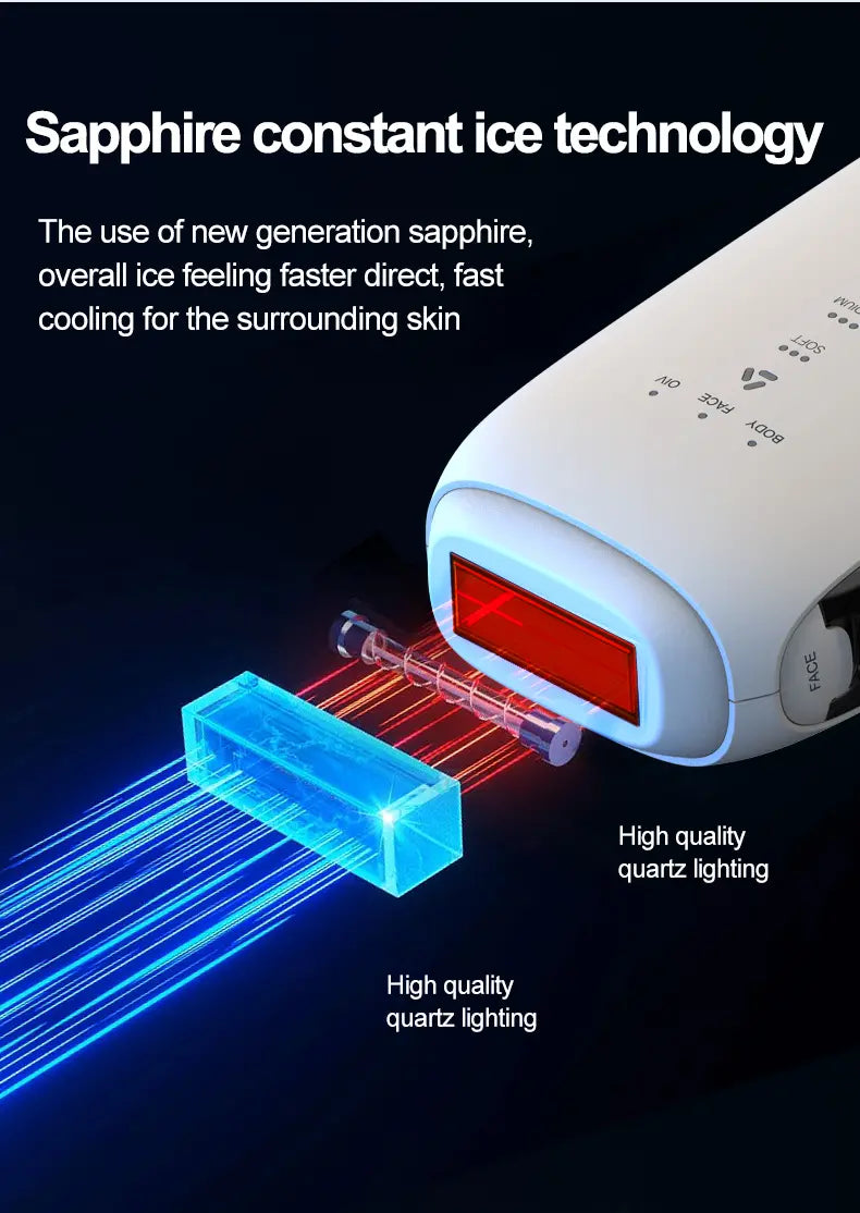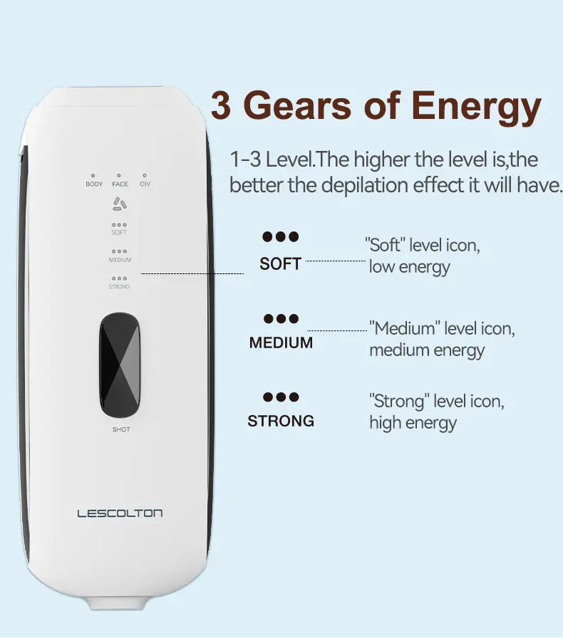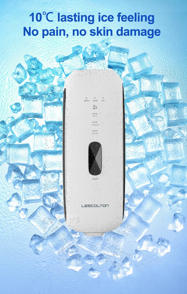 Lescolton laser works with IPL HR SR technology, ice cold, air and contact, and there is absolutely no pain.